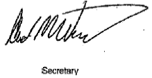 | 2. | The undersigned is the duly elected, qualified and acting Secretary of the Company, and has custody of the corporate records of the Company and is a proper officer to make this certification. |