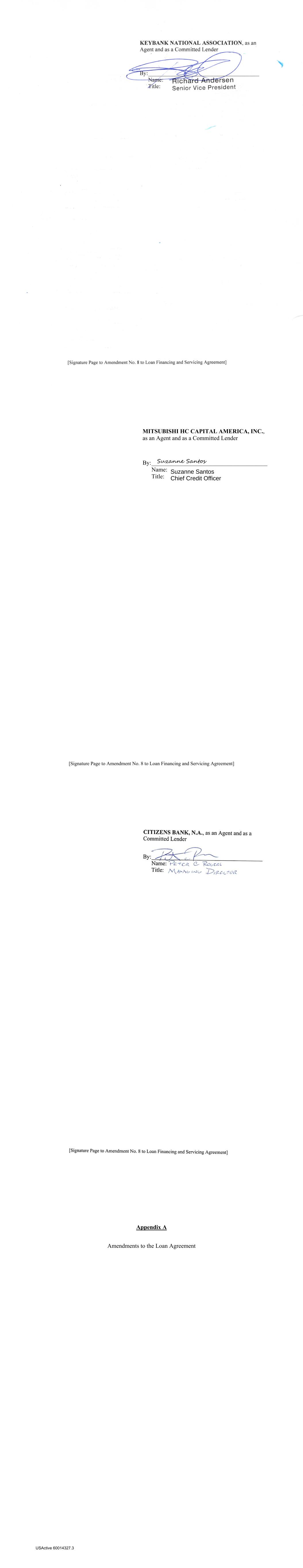 [Signature Page to Amendment No. 8 to Loan Financing and Servicing Agreement] MITSUBISHI HC CAPITAL AMERICA, INC., as an Agent and as a Committed Lender By:_______________________________________ Name: Title: Suzanne Santos Chief Credit Officer USActive 60014327.3 Appendix A Amendments to the Loan Agreement